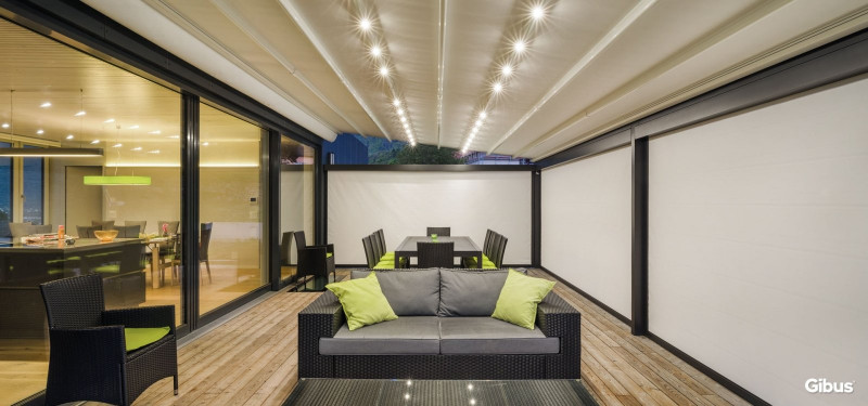 Pèrgola d'alumini envernissat amb pols amb estreps i components inoxidables. El disseny es caracteritza pel marc frontal que compta amb un original dibuix diamantat. La guia portant no sobresurt de la vora frontal del canaló. Està disponible amb subjecció a la paret, al sostre o en la versió autoportant (model Pavilion). L'estructura ha de tenir una inclinació mínima d'entre el 8% i el 19% segons la volada i està dotada de canaló amb desguàs integrat a les potes.