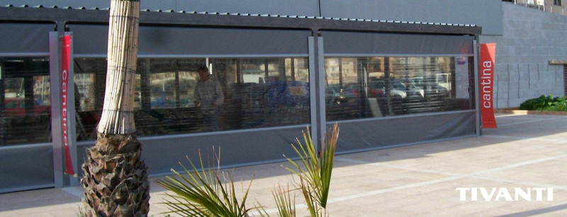 The windbreaker model is a system with a 12x4 guide that, as its name suggests, allows us to make an enclosure that isolates us from the wind and inclement weather. It also has the option of putting intermediate profiles to increase its resistance and can be made with a transparent plastic window with an acrylic canvas frame or PVC to allow the view to the outside.
