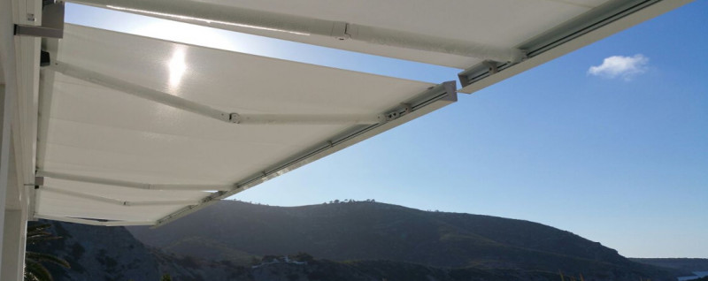 For a two-storey house located on the top of a cliff in Ibiza, 6 Segno chests have been placed, 3 on the ground floor and 3 on the upper floor with white polyester fabric and white lacquered hardware, all of them motorized and controlled by two remote controls, 1 for each plant.