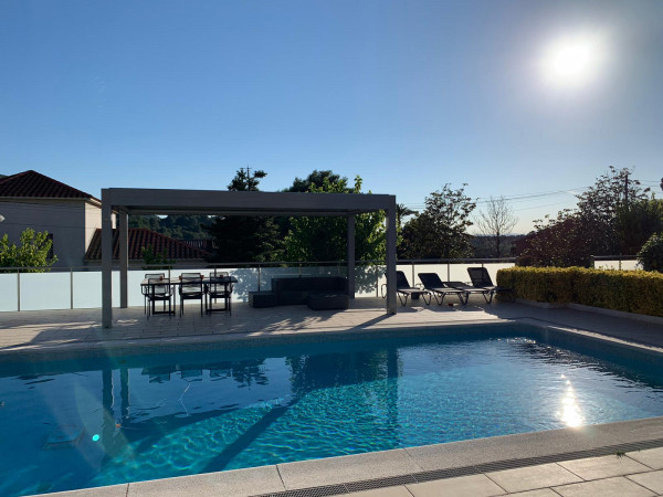 Pérgola de 90º Med Zenit se caracteriza por ser una pérgola por la lluvia que se puede instalar en plano, es decir, sin necesidad de inclinación debido a que los perfiles intermedios del tejido están curvados para ayudar al tejido desaguar lateralmente a las canales perimetrales del producto. Confeccionado con tejido opatex pro del catálogo de Gibus, es una pérgola que permite hacer un cerramiento de una terraza o jardín y aprovechar con el máximo confort en un espacio adicional. Se pueden añadir toldos verticales con cajón y cremallera con tejido soltis 96 como fue este caso para mejorar la experiencia y utilización de la pérgola de toldo lluvia.
